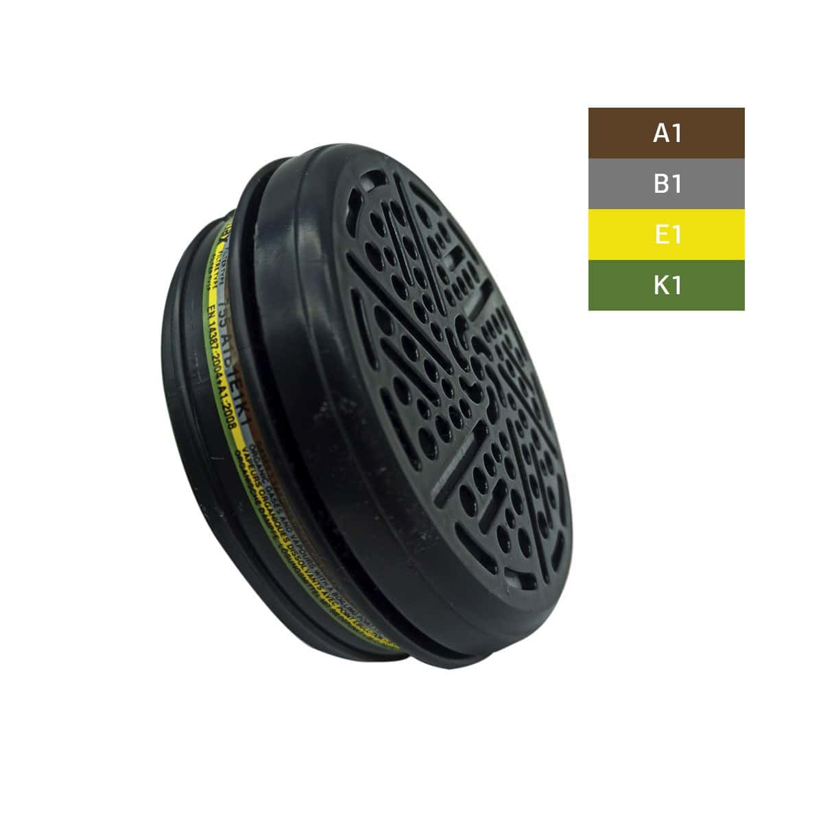 Aνταλλακτικό φίλτρο προστασίας αναπνοής που προσφέρει προστασία από οργανικά αέρια, διαλύτες, αλογόνα, ανόργανα αέρια (χλώριο, υδρόθειο και υδροκυανικό οξύ), διοξείδιο του θείου και αμμωνία. Βιδωτό φίλτρο, κατασκευασμένο από πλαστικό ΑBS. Πιστοποίηση EU. Πρότυπα EN 14387:2004+A1:2008 – EN 143:2000/A1:2006 (P3 R). Κανονισμός (ΕΕ) 2016/425.