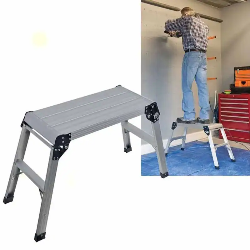 Υπερυψωμένη πλατφόρμα εργασίας για επαγγελματική και οικιακή χρήση. Κατασκευασμένο από αλουμίνιου με αναδιπλούμενα πόδια για ευκολία στην αποθήκευση. Πιστοποίηση ΕΝ131 για μέγιστο φορτίο 150 κιλά. Ισχυρό, ελαφρύ, εύχρηστο, ανθεκτικό , σταθερό και ασφαλές.  Διαθέτει μηχανισμό κλειδώματος των ποδιών στην ανοιχτή θέση και αντιολισθητική επιφάνεια για μέγιστη ασφάλεια σε κάθε σας βήμα και τάπες από καουτσούκ στα πόδια για μεγαλύτερη σταθερότητα. Διαστάσεις επιφάνειας 75x30cm. Ύψος 50cm. Βάρος: 3,6kg