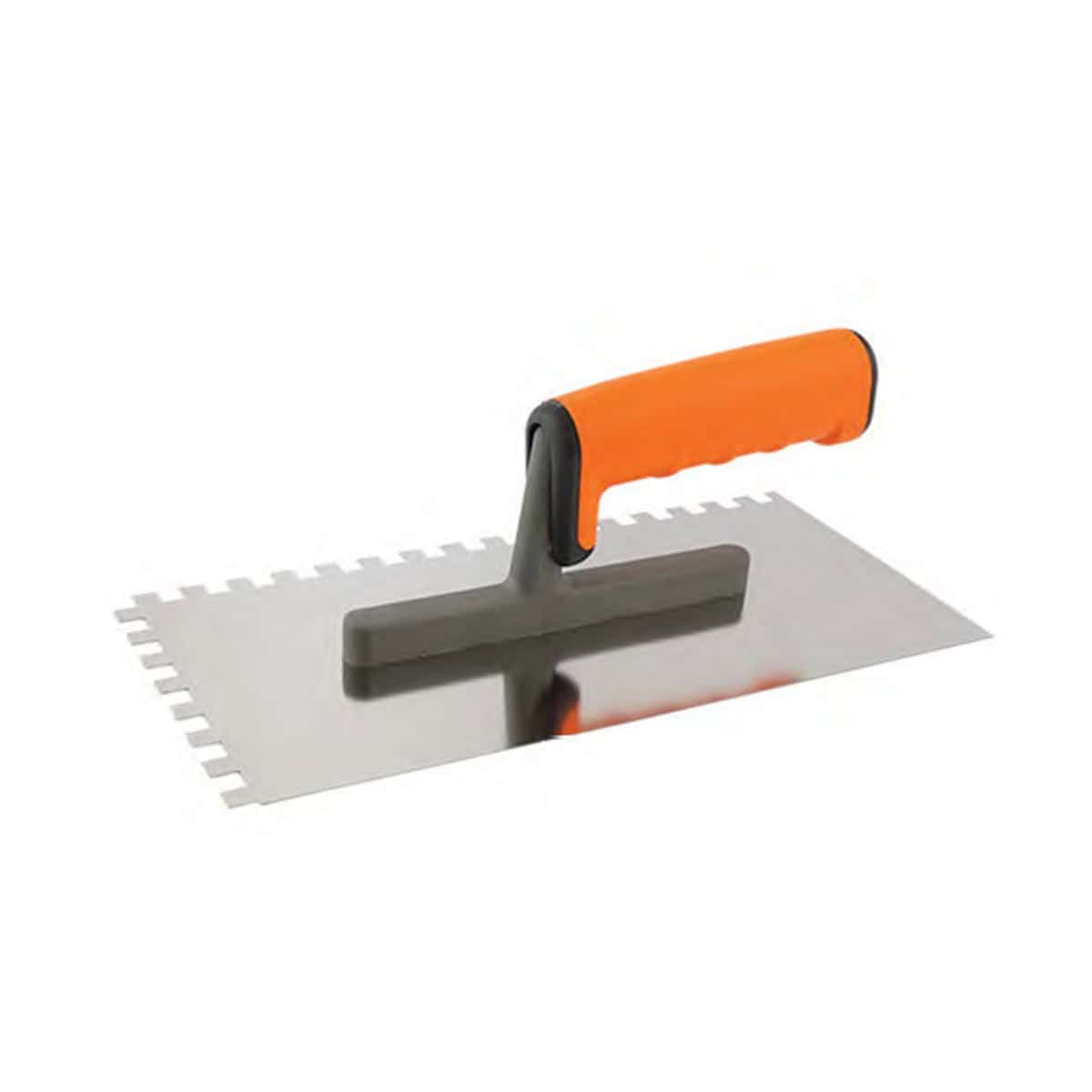 Μυστρί πλακάδων κατασκευασμένο από ανοξείδωτο ατσάλι (inox). Διαθέτει λεπίδα πάχους 0,7mm με τετράγωνα δόντια και εργονομική soft-touch λαβή. Ανθεκτικό στη χρήση, ιδανικό για επαγγελματίες. Διάσταση λεπίδας 130x270mm. Διαθέσιμα μεγέθη δοντιών 8x8mm, 10x10mm, 12x12mm. και 15x15mm. Ευρωπαϊκής κατασκευής.
