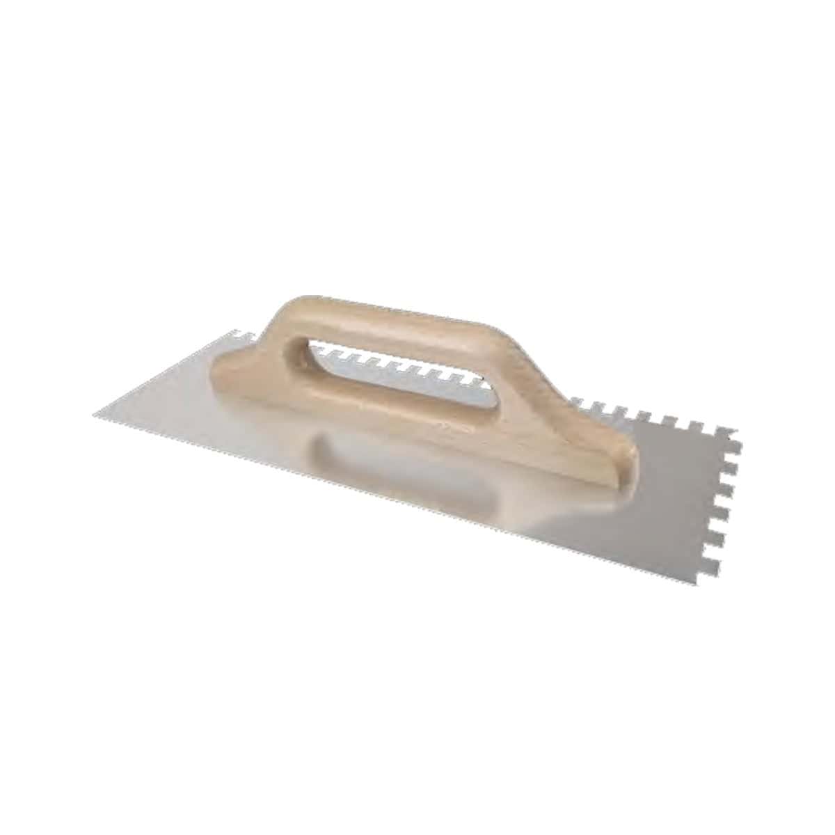 Επαγγελματικό εργαλείο από ανοξείδωτο ατσάλι (inox) με λεπίδα πάχους 0,7mm με τετράγωνα δόντια και ξύλινη λαβή. Διάσταση λεπίδας 130x480mm. Διαθέσιμα μεγέθη δοντιών 8x8mm, 10x10mm και 12x12mm. Ευρωπαϊκής κατασκευής.