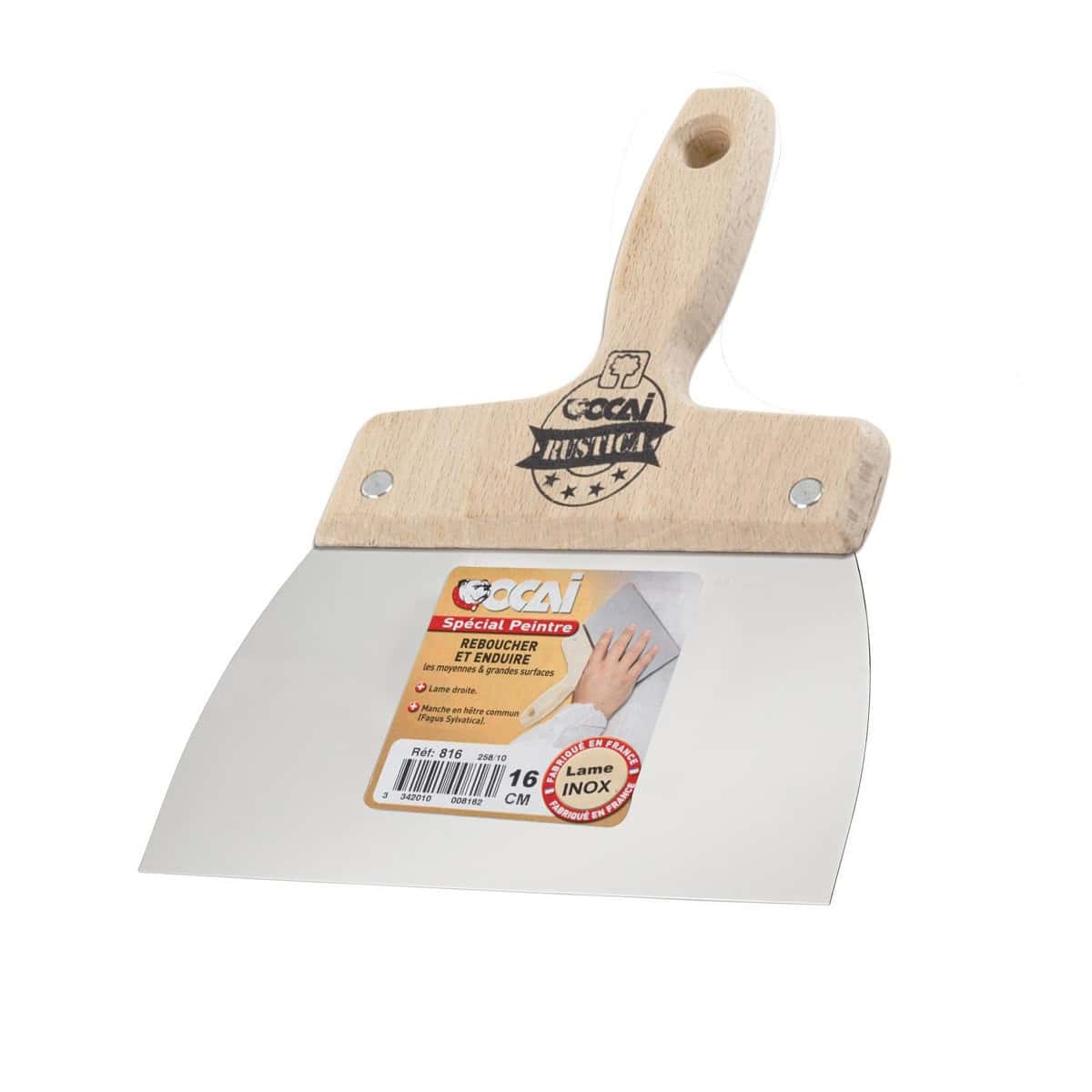 Σπάτουλα oval με inox λάμα και ξύλινη λαβή. Η στρογγυλεμένη λάμα έχει σχεδιαστεί ειδικά για την καλύτερη συγκράτηση του υλικού. Εξασφαλίζει μεγαλύτερη πρόσφυση και καλύτερο έλεγχο του υλικού κατά τη διάρκεια της εφαρμογής. Ιδανική σπάτουλα για σοβάδες και γυψοσανίδες. Ευρωπαϊκών προδιαγραφών, γαλλικής κατασκευής.
