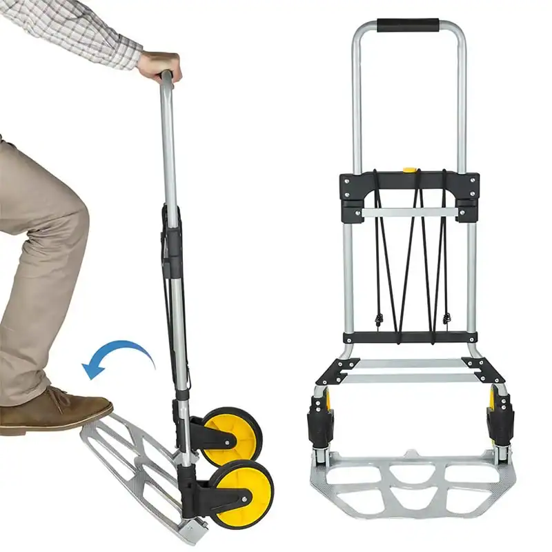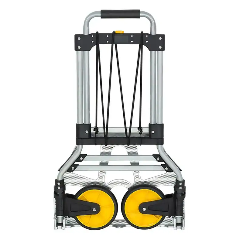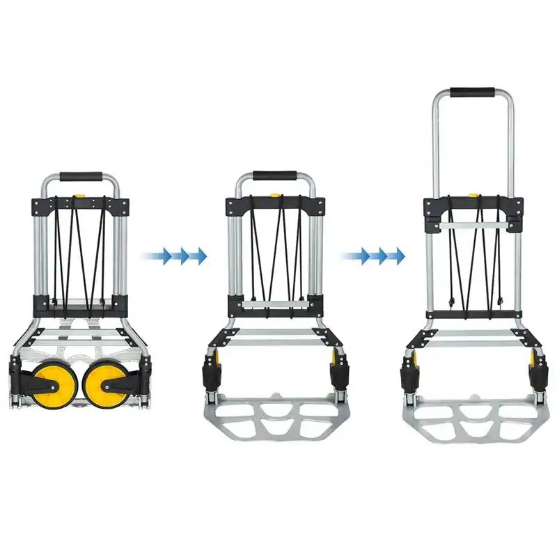 Πτυσσόμενο καρότσι μεταφοράς αντικειμένων τόσο για επαγγελματική όσο και οικιακή χρήση. Βιομηχανικού τύπου κατασκευή από κράμα αλουμινίου. Είναι ελαφρύ, ανθεκτικό και αντέχει φορτίο μέχρι 150 κιλά. Διαθέτει ελαστικό κορδόνι για να συγκρατεί τα βαριά αντικείμενα στο καροτσάκι. Οι μεγάλοι, ελαστικοί τροχοί του προσφέρουν ομαλή και εύκολη κύλιση χωρίς να κάνουν θόρυβο. Είναι ιδανικό για χρήση στην επιχείρηση, στην αποθήκη, στο αυτοκίνητο, στο σπίτι, στο γραφείο, στα ταξίδια, στα ψώνια και οπουδήποτε αλλού απαιτείται μεταφορά βαρέων αντικειμένων.