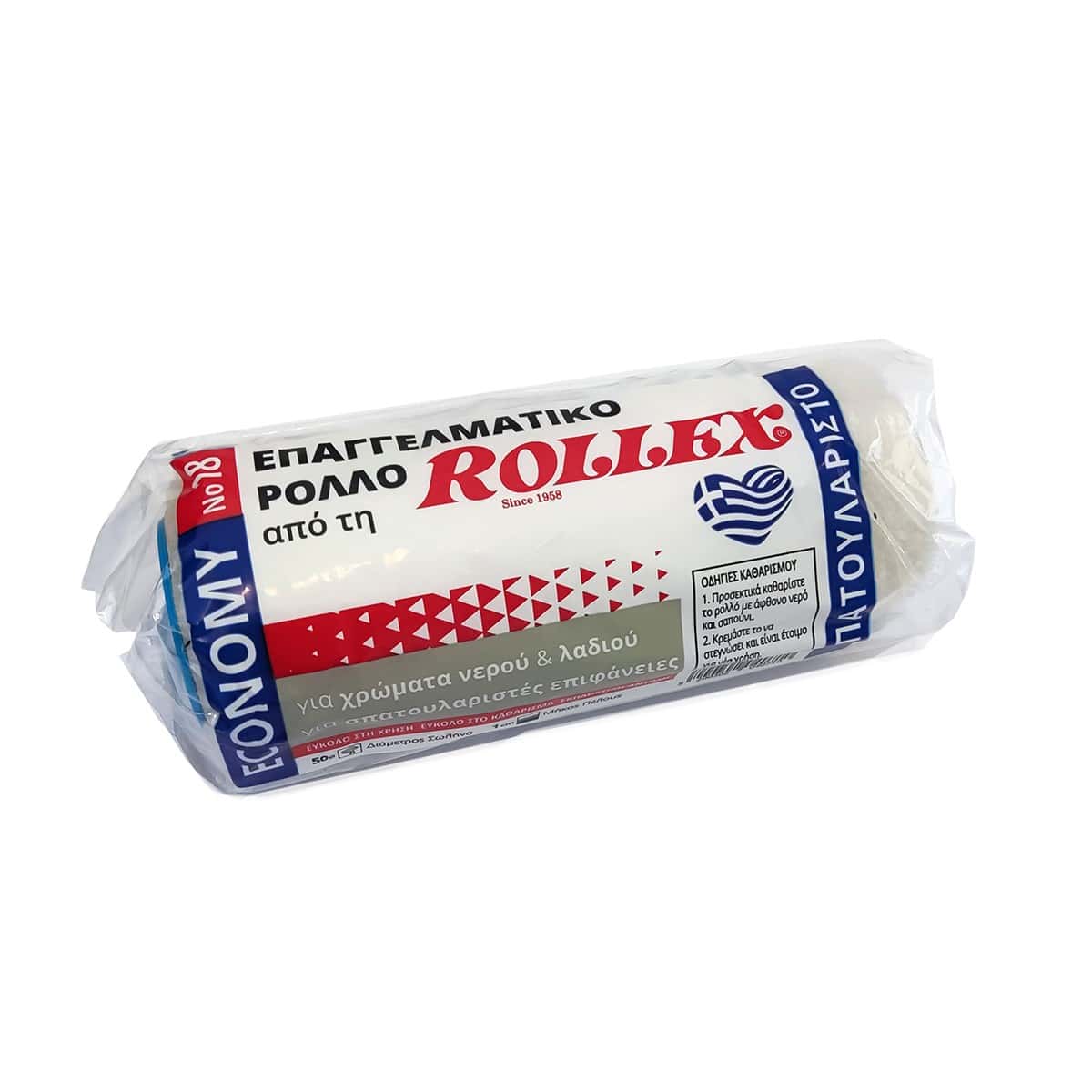 Rollex texture economy σπατουλαριστό. Ρολό βαφής κατάλληλο για χρώματα νερού και λαδιού για σπατουλαριστές επιφάνειες λείες ή ελαφρώς άγριες. Διάμετρος σωλήνα Ø50, ύψος πέλους 1cm και μήκος πέλους 18cm. Εύκολο στη χρήση και στο καθάρισμα με εκπληκτική αντοχή. Κατάλληλο για επαγγελματίες.