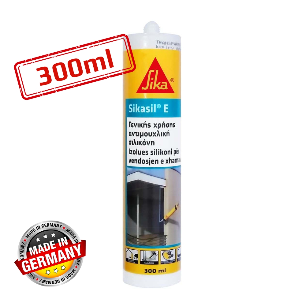 Το Sikasil E είναι αντιμουχλική σιλικόνη, 1 συστατικού, κατάλληλη για σφράγιση υαλοστασίων. Made in Germany.