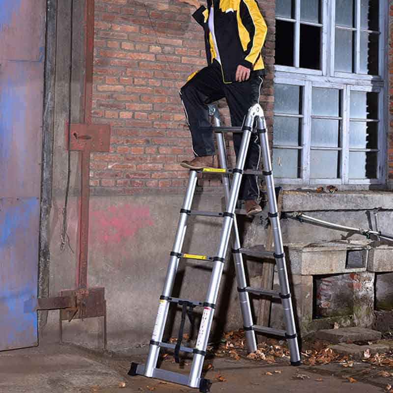 Τηλεσκοπική σκάλα αλουμινίου 2 πλευρών για επαγγελματική χρήση. Ιδανική για εργασίες σε εξωτερικούς και εσωτερικούς χώρους όπου απαιτείται να φτάσετε πολύ ψηλά με ασφάλεια. Κατασκευάζεται εξ ολοκλήρου από κράμα αλουμίνιου. Είναι ελαφριά, εύχρηστη και ανθεκτική στη χρήση, στις καιρικές συνθήκες και στη διάβρωση. Πιστοποίηση ΕΝ131 για μέγιστο φορτίο 150 κιλών. Παρέχει ασφάλεια και σταθερότητα για να εξυπηρετεί τις ανάγκες του επαγγελματία τεχνίτη. Τα σκαλοπάτια έχουν αντιολισθητική επιφάνεια για να μη γλιστράνε, κλειδώνουν με διπλές ασφάλειες στην ανοιχτή θέση και συγκρατούνται με ιμάντα στην κλειστή θέση για ασφαλή μεταφορά.